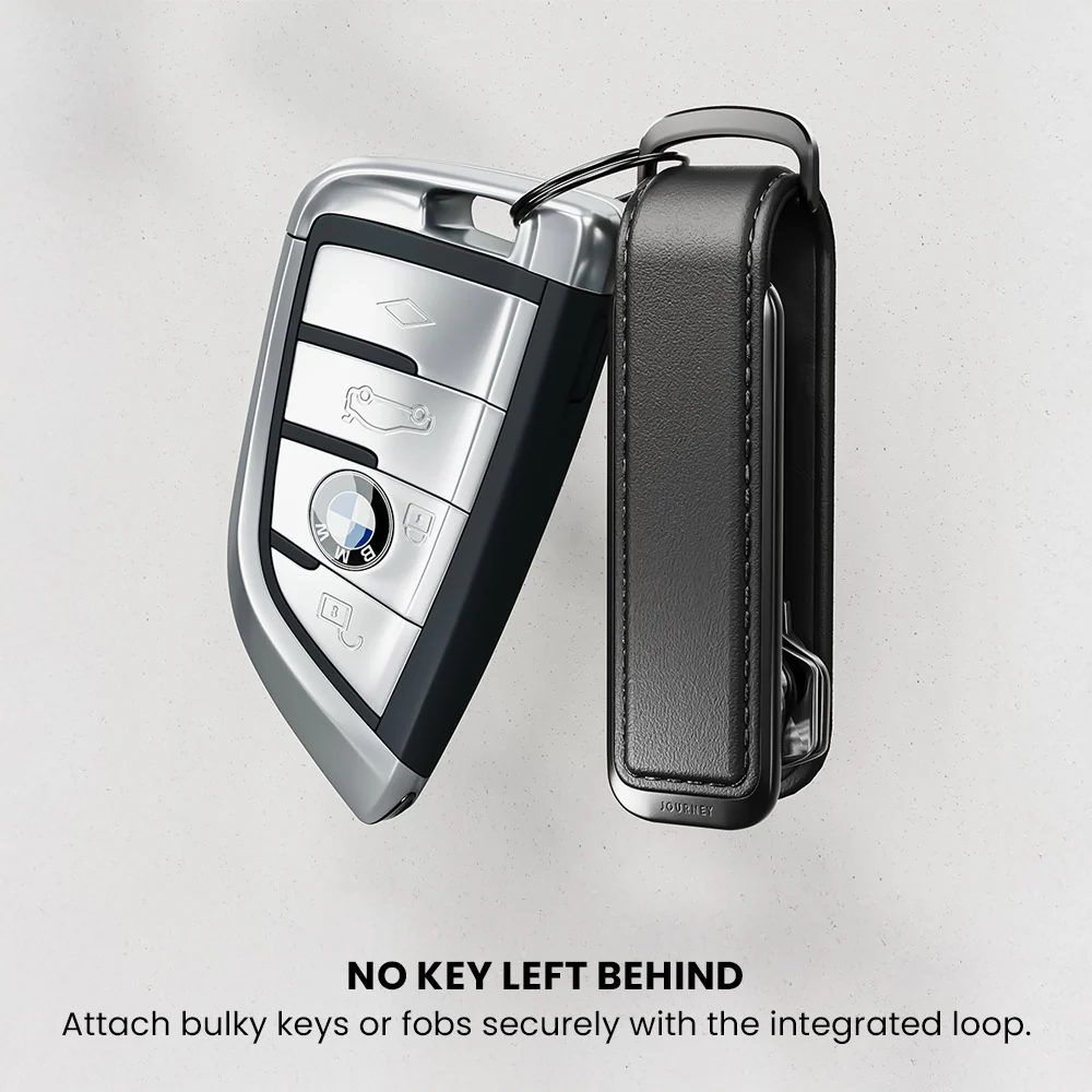 The Journey Versa Key Organizer combines premium leather and durable metal for a sleek, minimalist design that keeps your keys compact, quiet, and tangle-free.